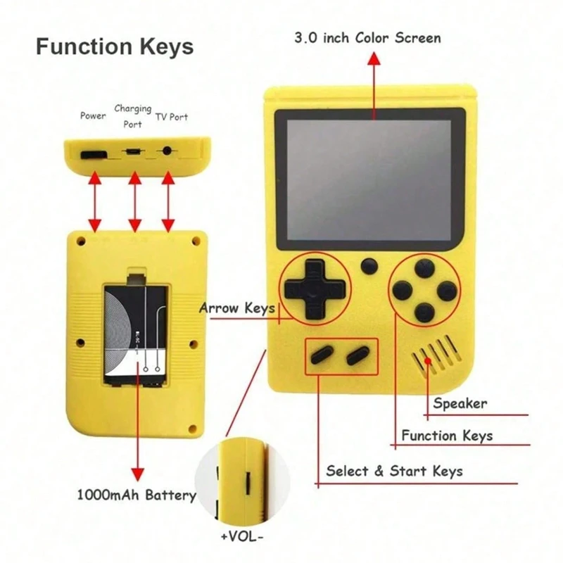 ENVIO IMEDIATO!!!Todos os produtos são testados antes do envio.Com seu design retro e tamanho reduzido, este console é perfeito para levar diversão dos jogos para qualquer lugar.O Mini GameBoy vem com uma incrível coleção de 400 jogos clássicos pré-carregados, oferecendo uma ampla variedade de opções para todos os gostos.Desde os icônicos jogos de plataforma até os desafiadores jogos de ação e aventura, você encontrará uma seleção diversificada para reviver como emoções do passado.